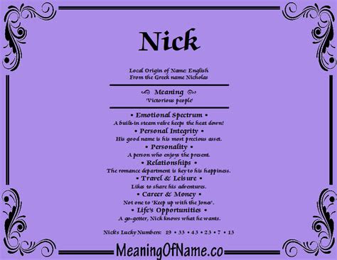 Have you ever wondered about the meaning behind your name? Well, today we are going to delve into the world of Nick. Yes, that's right, Nick, the name that is short and sweet but has a whole lot of personality. From the moment you hear it, you can't help but think of someone who is charming and funny, and that's because Nick is not just a name, it's a way of life.